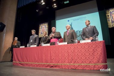 Junto a el Señor Arzobispo inauguraron el congreso, Ana Isabel Jiménez; alcaldesa de Alcalá y el presidente de la Congregación de Hermandades Nazarenas Singulares de la localidad, Vicente Romero.