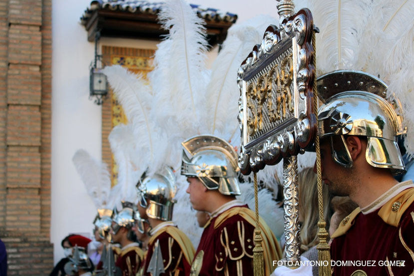 «El Prendimiento de Jesús». En nuestra Hermandad se representa cada Viernes Santo a través de la Decuria Romana, a la hora de la salida cuando a la voz del capitán, espada en alto, que pronuncia la palabra “Prendedlo”, el paso del Señor es escoltado por el resto de los integrantes de la decuria, que lo rodean y custodian hasta el regreso de vuelta a su templo.