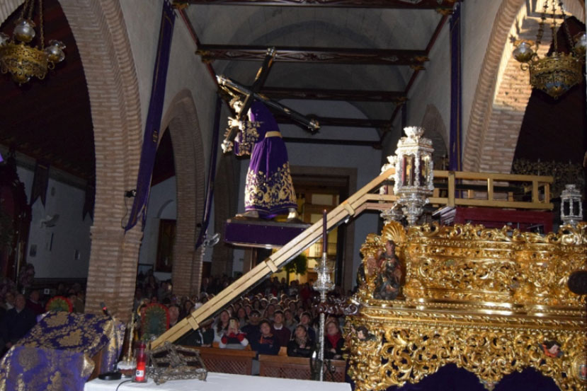 «El encuentro». La Virgen y San Juan van al encuentro del Señor. En nuestra Hermandad este rito tiene lugar el Viernes Santo, en el momento cuando los pasos suben al Castillo y se unen para celebrarse el Sermón del Calvario.